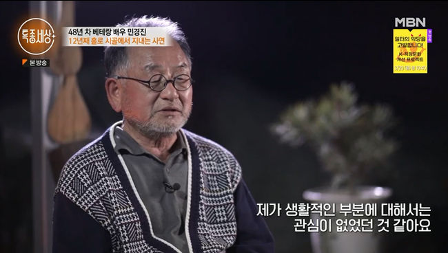 영화 '범죄도시' 드라마 '자이언트' 등 출연작만 100편에 이르는 중견 배우 민경진이 아내와 이혼 이후 12년째 혼자 지내고 있다고 밝혔습니다.