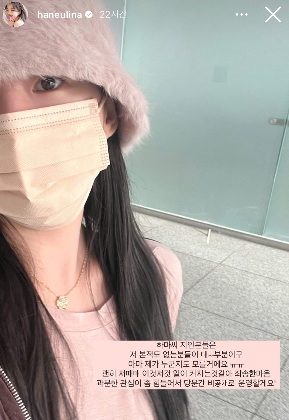 당시 초호화 하객들이 화제가 되자 하늘은 "연예인 인맥들은 내가 아닌 남편과 관련된 것이며 과도한 관심에 힘들다"며 SNS를 비공개로 전화했습니다.