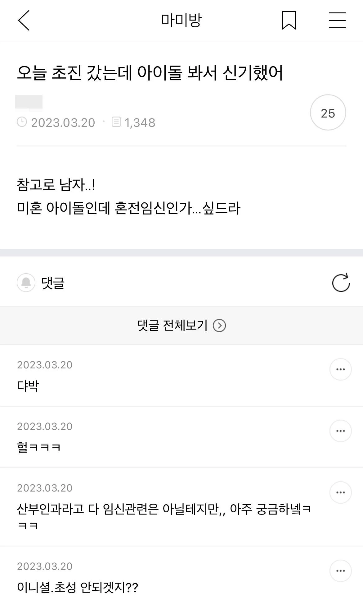 이뿐만 아니라 다른 한 맘카페에서는 "오늘 초진 갔는데 아이돌 봐서 신기했다. 참고로 남자. 미혼 아이돌인데 혼전임신인가 싶더라"라며 산부인과에서 아이돌을 목격했다는 글이 게재됐고 이에 이 아이돌이 세훈이라는 추측이 퍼졌습니다.