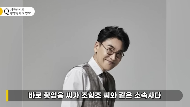 유튜버 이진호는 황영웅의 소속사가 '불타는 트롯맨' 심사위원인 가수 조항조와 같은 '우리엔터'라고 주장했습니다. 황영웅이 다른 가요제와 '불타는 트롯맨'에서 조항조의 곡을 불렀다는 점이 해당 의혹을 뒷받침했습니다.