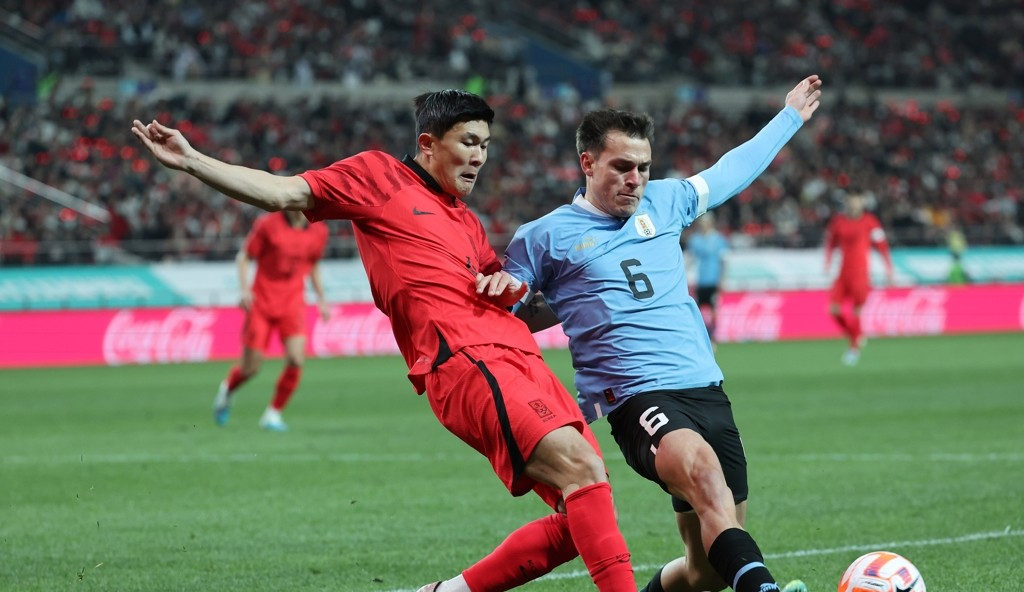 김민재는 28일 오후 8시 서울월드컵경기장에서 열린 우루과이와의 친선 A매치에 선발 출전했습니다. 지난 24일 콜롬비아전에 이어 2경기 연속 풀타임 출전인데요.