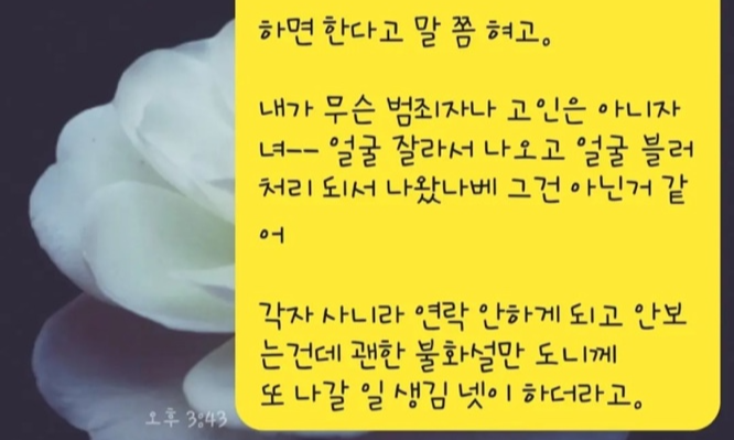 조민아는 "개인적으로 연락하고 지내다가도 2015년 세바퀴때부터 슈가맨, 신과함께 등 방송만 하면 뒤통수 맞듯이 아무 연락 없이 저만 빼고 셋이 녹화한 걸 저도 봐왔습니다"라며 속상한 심경을 전했습니다.