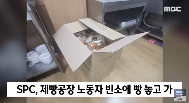 SPC 그룹은 지난 16일 사고로 숨진 A씨의 장례식장에 파리바게뜨 빵이 담긴 상자들 두 상자 두고 갔습니다. 상자 안에는 땅콩크림빵과 단팥빵이 들어있었습니다.