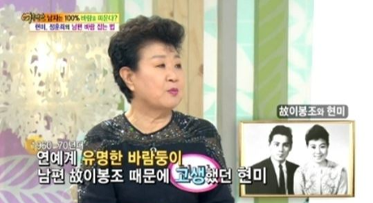 현미는 이때부터 그를 눈여겨본 작곡가 故이봉조와 3년간 연애한 뒤 결혼 했습니다. 현미는 1962년 발표한 '밤안개'로 큰 인기를 누렸고 남편 이봉조와 '보고 싶은 얼굴', '떠날때는 말 없이', '몽땅 내 사랑' 등 연이어 히트곡을 발표했습니다.