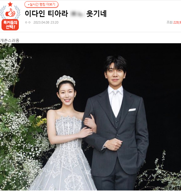 이다인 결혼식 티아라 웨딩드레스 난리난 반응