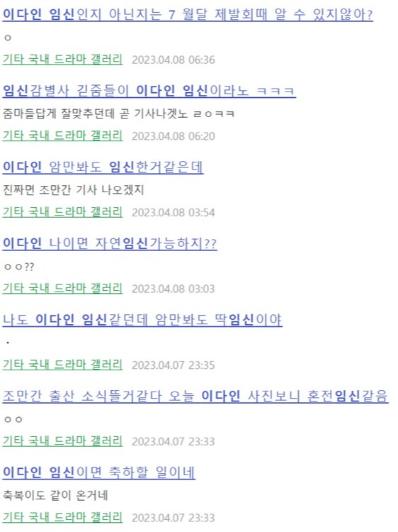 다른 네티즌도 "이다인 2부 드레스를 보니까 드레스 라인이 퍼져있다", "얼굴도 부은 거 같고 딱 봐도 임신이다"며 댓글을 남겼습니다.