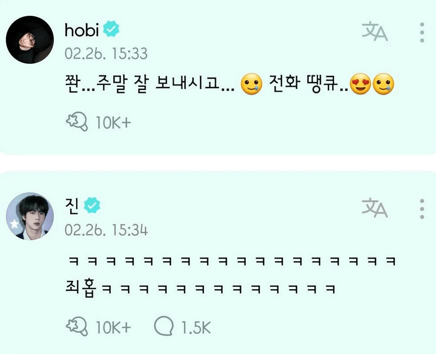 제이홉은 "나에게도 이런 시기가 오다니"라며 지난해 12월 먼저 입대해 군복무 중인 멤버 진에 대해 "하루에 한 번씩 전화가 온다. '제이홉 어때?라고 한다"며 "하루하루 전화해 주는 것이 고맙다"라고 언급했습니다.