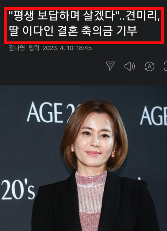 이승기 이다인의 결혼식 이후인 지난 10일 견미리는 결혼식 축의금을 한국장애인정보협회와 공생공감에 기부하겠다는 뜻을 밝혔습니다.