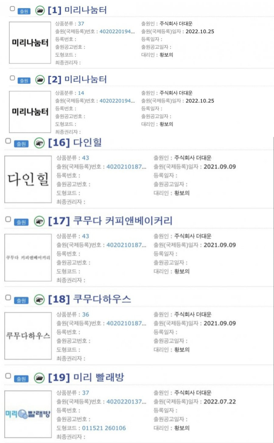 또 견미리 아들이 대표 이사로 있는 주식회사 '더대운'이 '미리빨래방'과 '미리나눔터' 상표권을 갖고 있다는 소식까지 전해졌습니다.