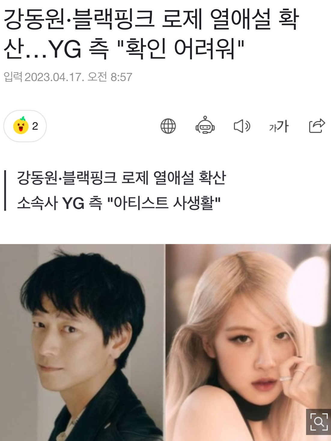 걸그룹 블랙핑크 멤버 로제와 배우 강동원의 열애설이 불거졌습니다.