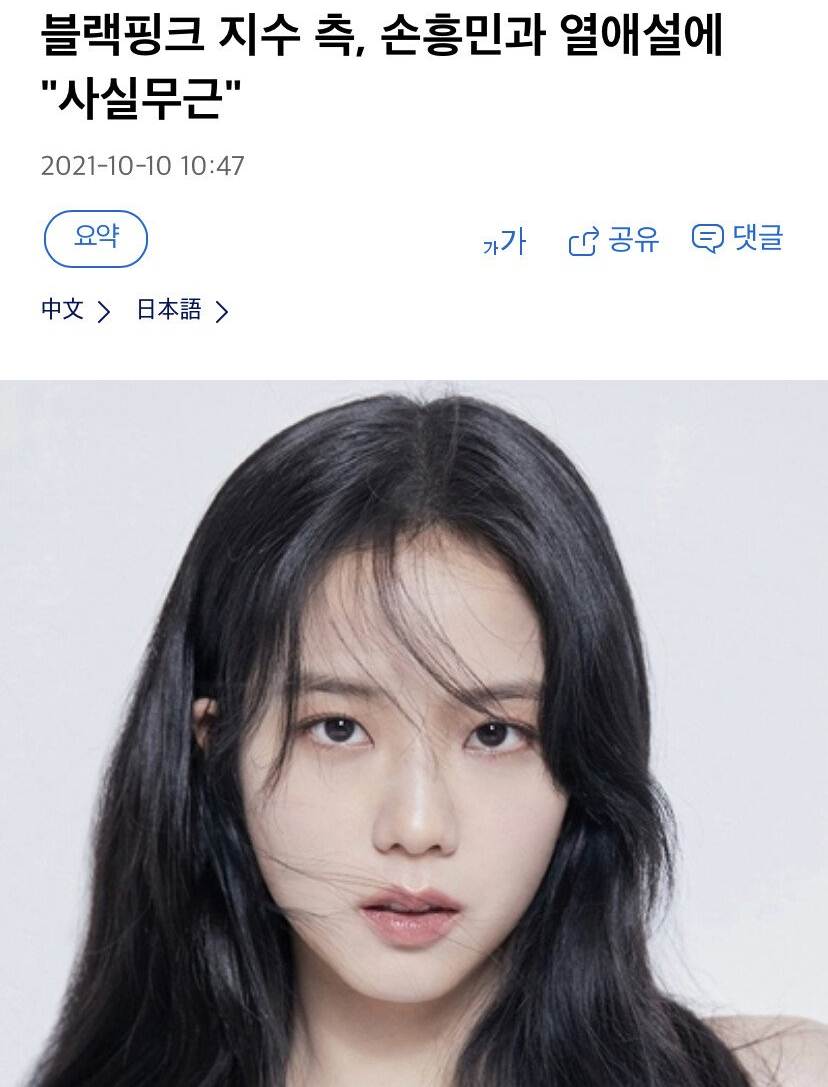 정말 아니면 아니라고하는 YG는 2021년 블랙핑크 지수와 손흥민의 열애설이 불거지자 '사실무근'이라고 강력하게 부인했습니다.