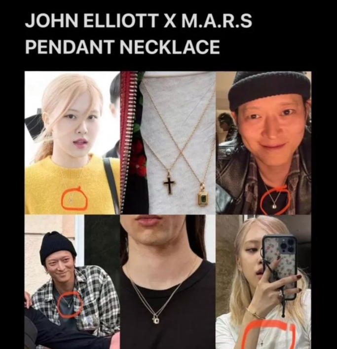 작성자는 로제와 강동원이 열애 중이라고 주장하며 4가지 증거를 제시했습니다. 첫 번째 열애 증거로 함께 착용한 목걸이와 아우터를 제시, 공개된 사진 속에는 같은 디자인으로 보이는 목걸이를 착용한 모습이 담겼습니다.
