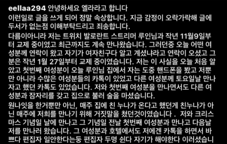 27만 게임 유튜버 여자친구 두고 바람 원나잇 폭로 (+누구)