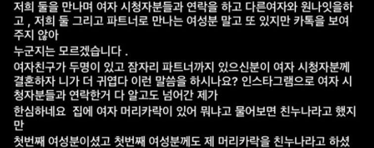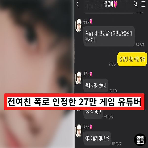 27만 게임 유튜버 여자친구 두고 바람 원나잇 폭로