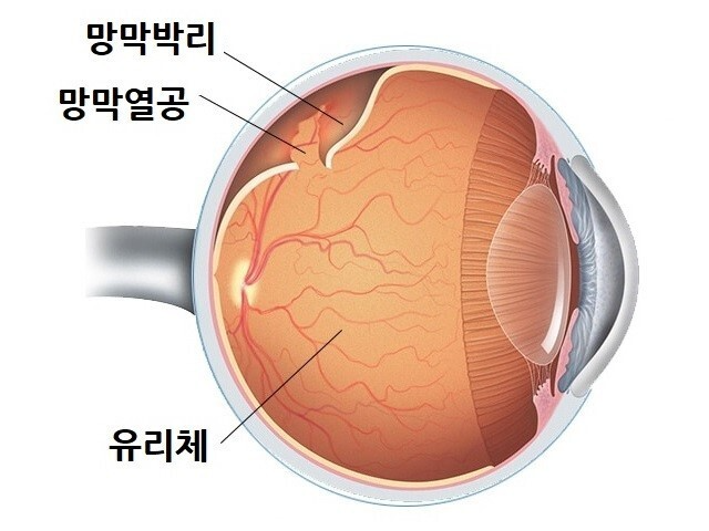 박수홍이 진단 받은 망막열공은 망막과 유리체가 붙어 있는 부위에서 망막이 찢어져 망막전층에 결손이 생긴 질환입니다.