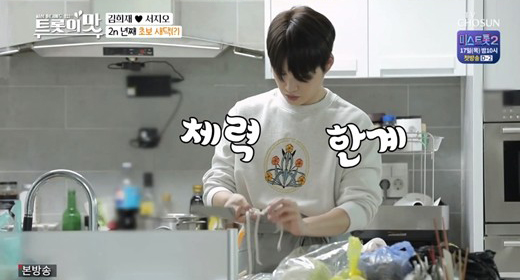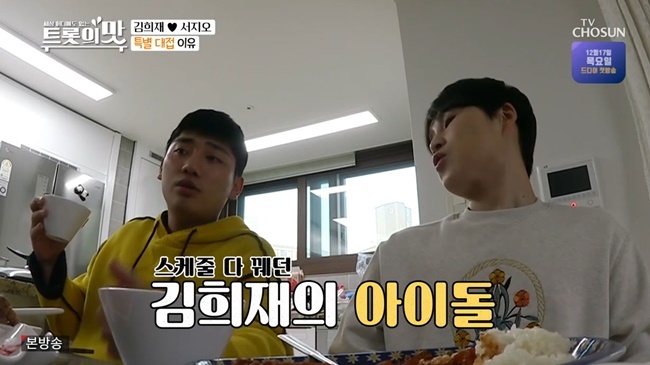 요리를 하며 서지오는 "요새 제일 힘든 게 뭐냐"고 물었고 김희재는 "체력적인 게 제일 힘들다"고 대답했습니다.