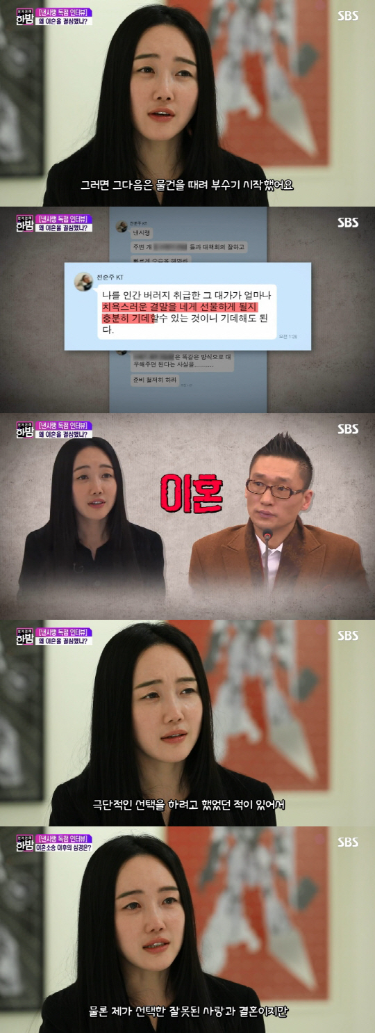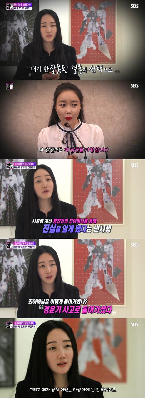 "전 국민이 반대하는 결혼을 왜 했느냐"는 질문이 가장 힘들었다고 고백한 낸시랭은 전 남편이 팀을 이뤄 조직적으로 속이고자 한 상황에 모르고, 속고, 설득을 당해 보낸 힘든 시간을 되돌아본다고 합니다.