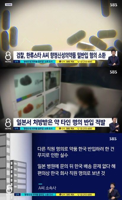 17일 SBS 8 뉴스는 한류스타 A씨가 졸피뎀 등 복수의 향정신성 의약품을 해외에서 국내로 몰래 들여온 혐의를 받고 있다고 보도했습니다.