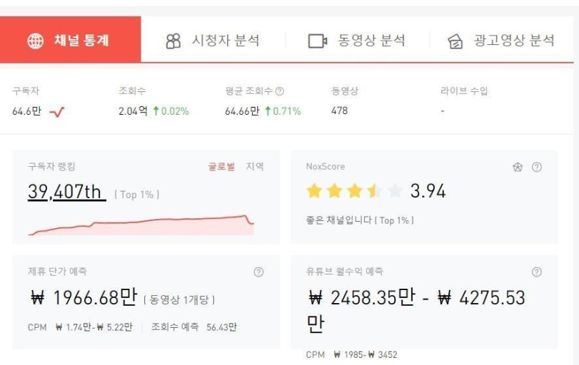 반면 구독자는 67만 명에서 64만 명으로 줄어들었습니다. 그러나 수익 창출의 기준이 되는 조회수는 간장게장 논란 후에도 꾸준히 성장세를 보였습니다.