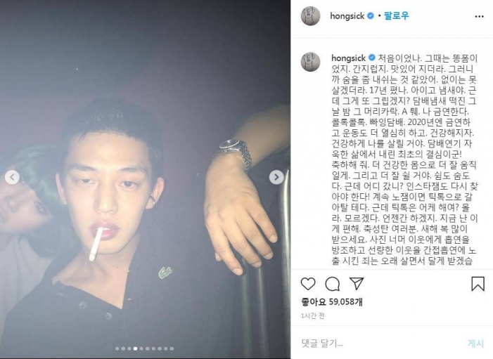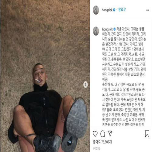 유아인은 24일 자신의 SNS에 "처음이었나. 그때는 똥폼이었지. 간지럽지. 맛있어지더라. 그러니까 숨을 좀 내쉬는 것 같았지 17년 폈나. 아이고 냄새야. 근데 이게 또 그립겠지? 그래도 해볼래. 콜록콜록. 빠잉 담배"라며 금연을 선언했습니다.