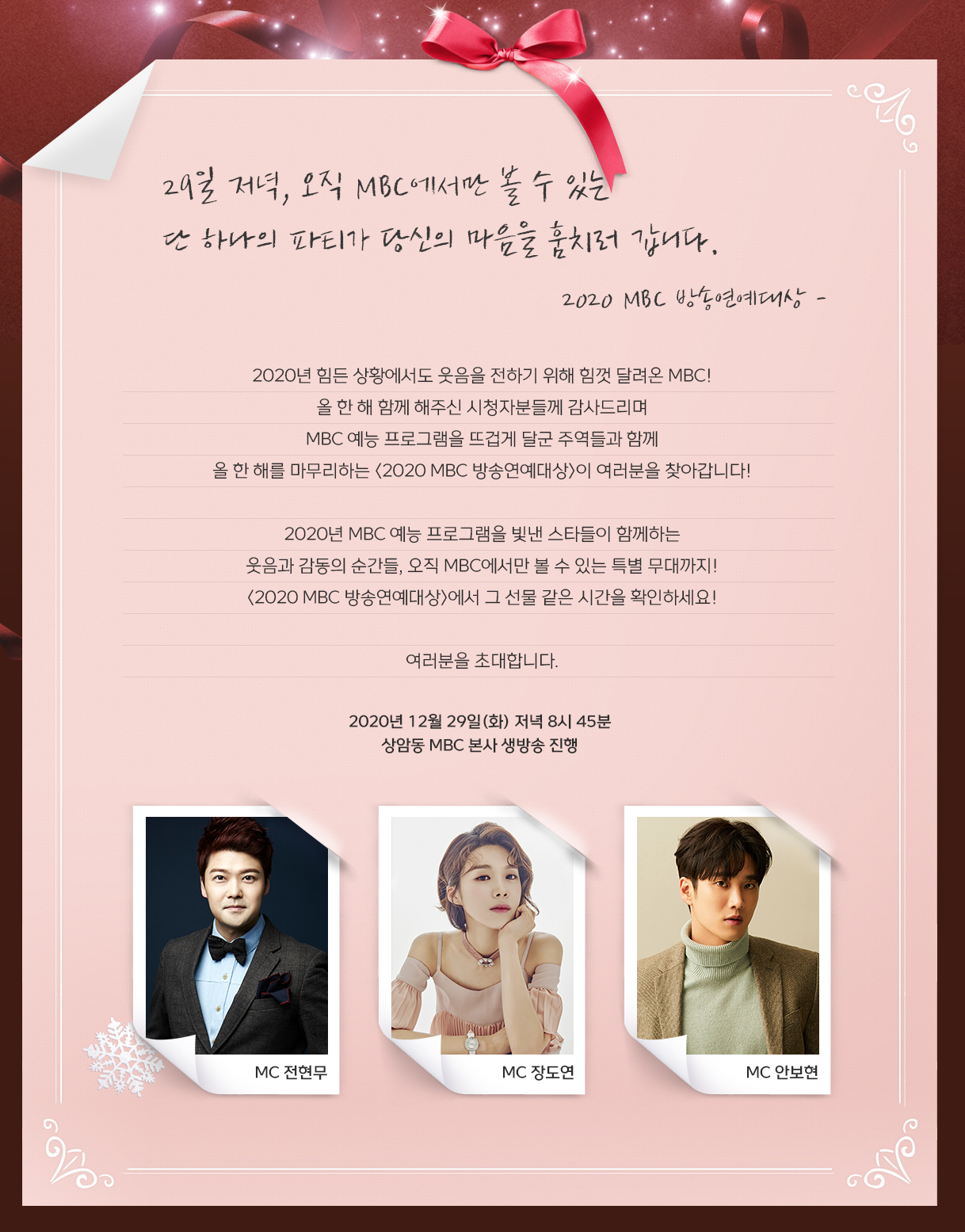 2020 MBC 방송연예대상은 2020년 12월 29일 저녁 8시 45분에 생방송으로 진행된다고 합니다.