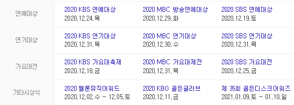 연말 시상식의 보면서 가족과 따뜻한 연말 보내시면 좋을 것 같습니다^^