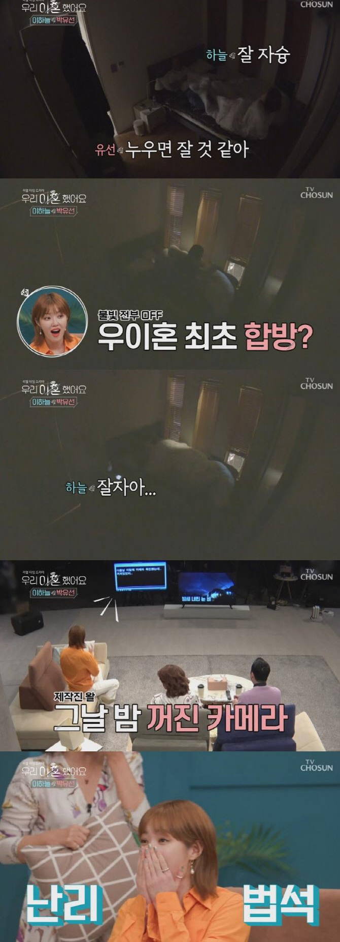이하늘 박유선은 '우이혼' 최초로 같은 방, 같은 침대에서 함께 밤을 보냈습니다. 김원희는 "우리가 뭘 본 거냐"며 그럴 수 있다고 생각은 했는데 이혼한 부부지 않냐"라고 놀라워했습니다. 제작진은 그날 밤 카메라가 꺼졌다고 전해 스튜디오가 초토화 되었습니다. 하필 그날 밤 카메라 배터리가 방전되었다고 하네요.