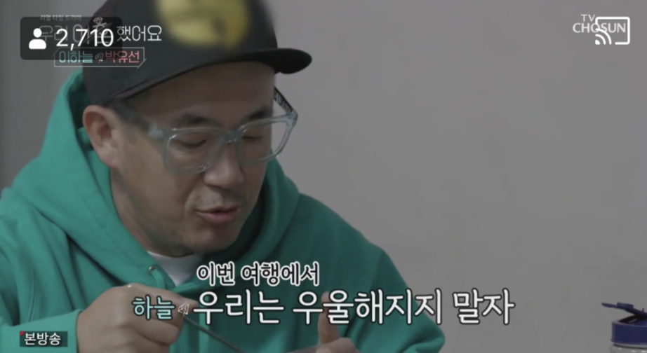 이하늘이 박유선이 집먼지 알레르기가 있었기 때문에 침구 정리도 해주었는데요, 이하늘은 "나는 좀 서글프다. 가끔 독거노인 같다. '세상에 나 혼자구나'라는 생각이 들더라. 지금은 내가 원해서 집에 있는 건데, 나중에는 어쩔 수 없이 한 곳에만 머물러야 하지 않냐. 받아들여야 하겠지만 서글퍼지더라"라고 속내를 털어놓기도 했습니다.