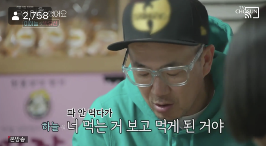 박유선을 보며 슬쩍 웃던 이하늘은 "조림 먹을 때 너 항상 파 먼저 먹지 않냐"며 "난 원래 파 안 먹다가 너 보고 먹기 시작했다"라고 미소 지었습니다. 박유선은 "나 20살 때 그 얘기했었다. 기억나냐"고 회상했고, 이하늘은 "음식을 안 가리고 먹어서 예뻐 보였다"라고 답했습니다.