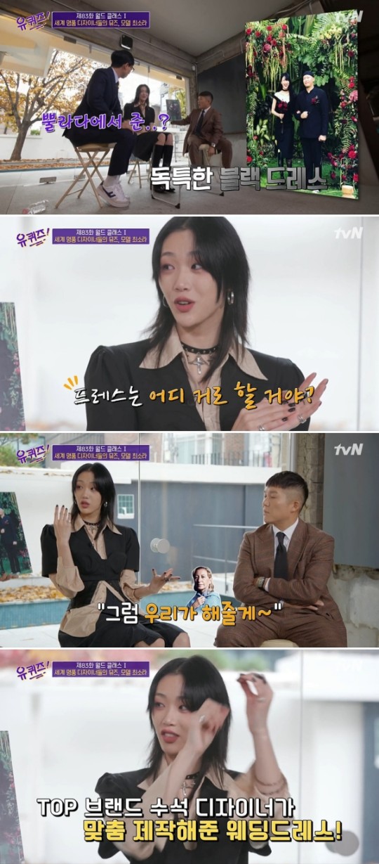 최소라는 유 퀴즈 온 더 블럭에 출연해 "프라다 쇼를 위해 방문했을 때, 어떤 드레스를 봤다. 내가 '너무 예쁘다. 웨딩드레스로 입어도 되겠다. 나 입고 싶다'는 식으로 흘려 말했는데 미우치아 여사가 그걸 듣고 '그래? 그럼 우리가 해줄게'라고 말했다"고 설명했습니다.