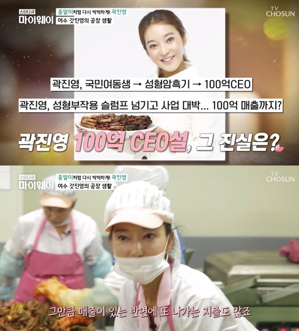 곽진영은 1991년 MBC 공채 20기로 데뷔했습니다. 이듬해 시청률 60% 이상을 기록한 국민 드라마 '아들과 딸'에서 막내딸 '종말이' 역을 맡아 유명세를 탔습니다. 2010년엔 김치 사업을 시작해 '종말이푸드' CEO로 변신했습니다.