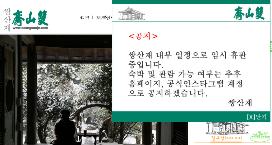 윤스테이 촬영지, 촬영 장소인 쌍산재 홈페이지 입니다.