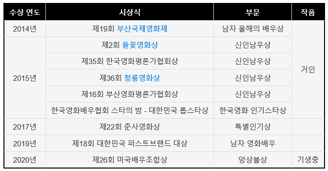 <최우식 수상 내역>