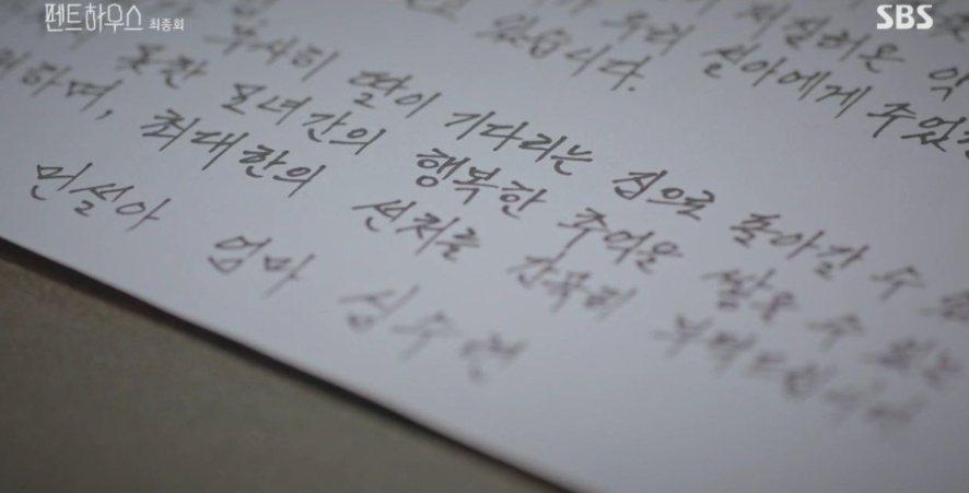탄원서에는 '부디 우리 윤희가 딸이 기다리는 집으로 돌아갈 수 있기를, 설아가 가지지 못한 모녀간의 행복한 추억을 쌓을수 있도록 최대한 선처를 부탁합니다. 민설아 엄마 심수련'이라고 쓰여있었습니다. 딸을 죽이는 범죄를 저질렀음에도 심수련이 자신을 여전히 동생으로 아꼈다는 사실을 알게 된 오윤희는 그 자리에서 오열했습니다.