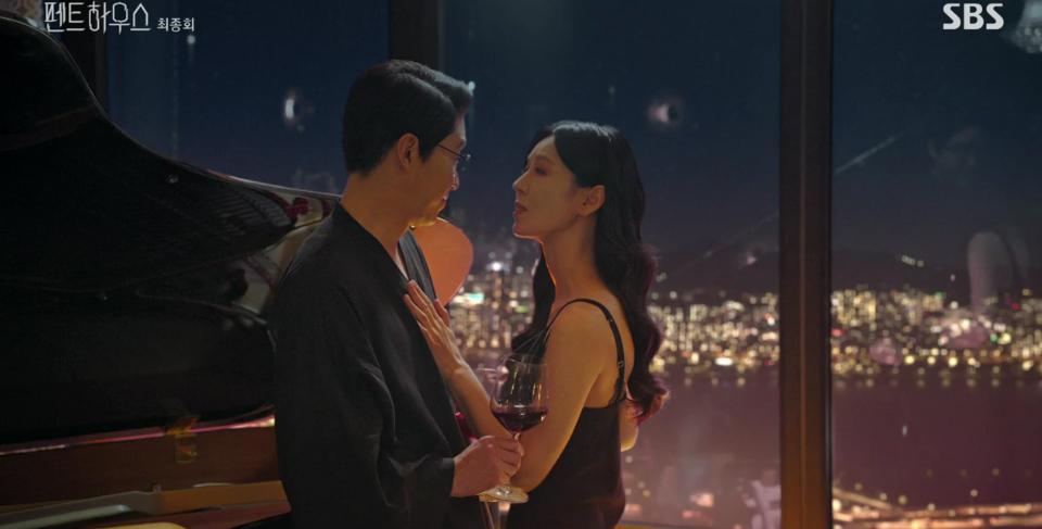 시간이 흘러 주탄대, 천서진은 모두 무혐의 판결을 받았고, 주단태는 무혐의 판결을 받은 것을 축하하는 파티를 열었습니다.