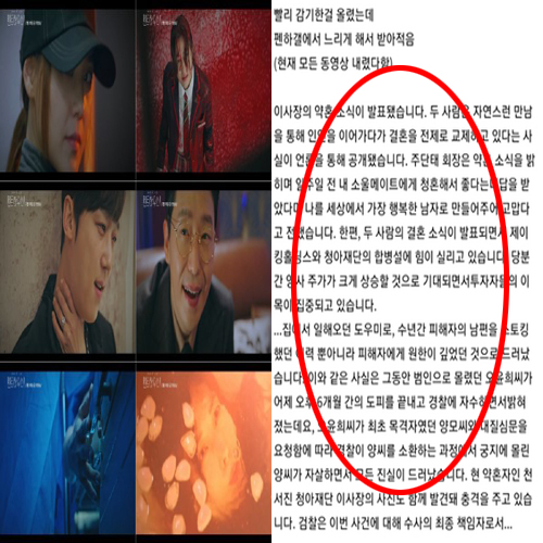 김수민 아나운서는 영상에서 대사 부분을 빠르게 편집했지만, 한 네티즌이 영상을 느린 배속으로 변경해 작성한 대사 내용이 온라인상에 공유되면서 스포일러 논란이 번졌는데요, 이 대사에는 펜트하우스 시즌2 극 중 주단태와 천서진의 관계가 어떻게 되는지, 현재는 탈옥한 오윤희가 어떤 행동을 취하는지, 양집사가 어떤 행동을 했는지 등 여러 결정적인 내용이 담긴 것으로 알려졌습니다.