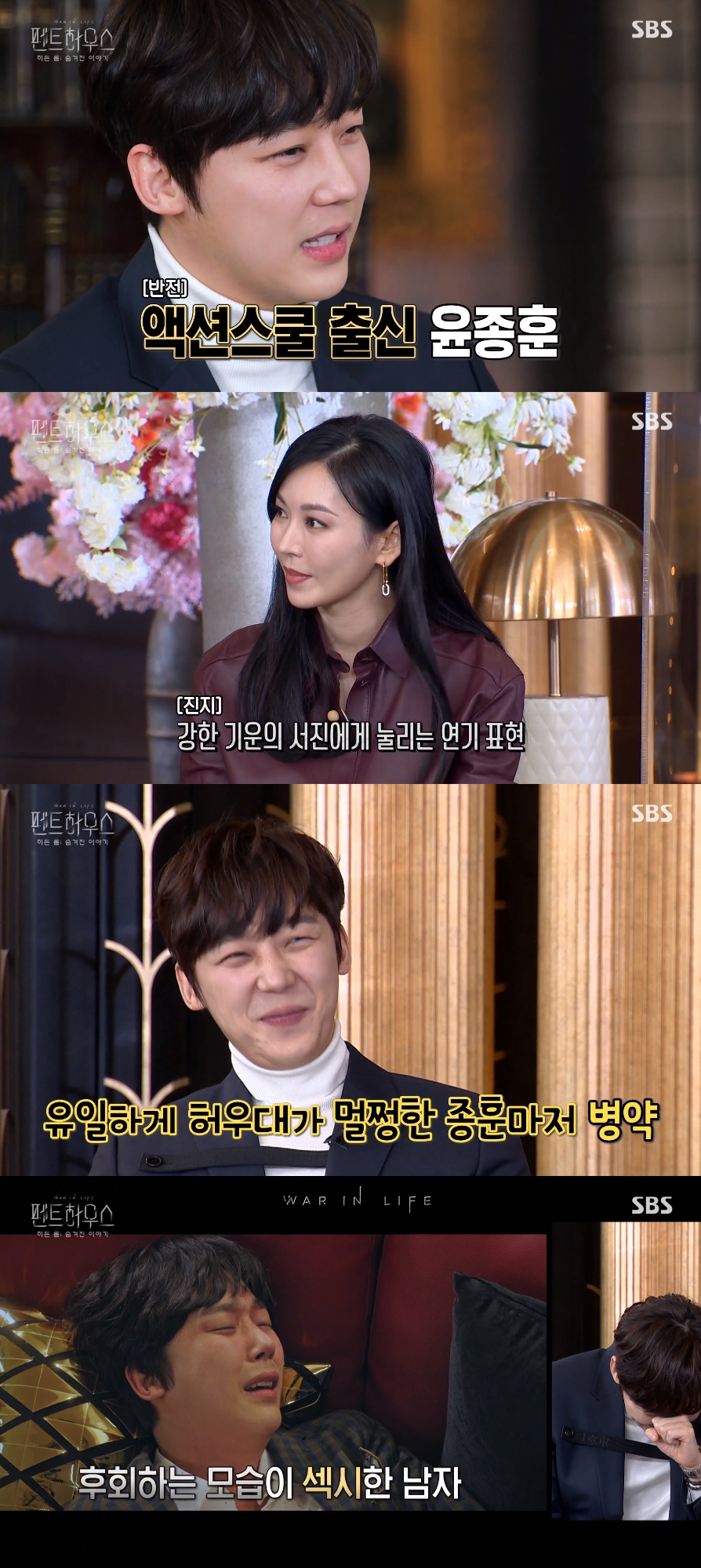 윤종훈은 "강한 캐릭터 천서진에 눌리는 역할이라 그랬다. 실제로는 건강하다"고 강조한 후 액션스쿨 정식 수료자라는 반전 매력도 공개했습니다.