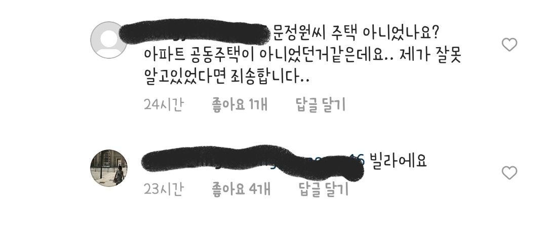 문정원이 층간소음 항의 댓글에 사과를 한 뒤, 일부 네티즌들은 비난성 댓글을 게재했습니다. "유튜브나 방송에서 보니 주택인 줄 알았는데 빌라였네", "아랫집 상황 이해된다"등의 댓글이 달렸습니다.