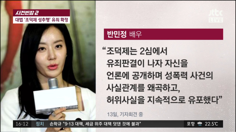 조덕제는 2015년 4월 영화 촬영 중 사전에 합의하지 않은 채 상대 반민정의 신체를 만지는 등 강제 추행한 혐의로 재판에 넘겨졌고, 이후 2018년 대법원에서 징역 1년에 집행유예 2년 성폭력 치료 프로그램 이수 40시간 선고를 받은 받은 바 있습니다.