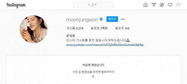 현재 문정원의 인스타그램 계정, 유튜브 채널은 비공개로 전환되어 있는 상태입니다.