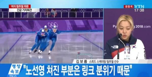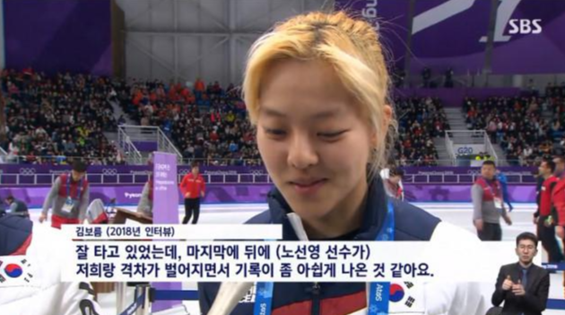 2018년 동계올림픽 당시 김보름은 팀 추월 경기에서 마지막으로 결승점을 통과한 노선영에 대해 "잘 타고 있었는데 마지막에 노선영의 격차가 벌어져 아쉬운 기록이 나온 것 같다"고 발언해 논란이 되었습니다.