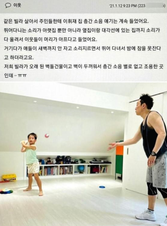 문정원·이휘재 집 아래층에 거주 중인 주민이 층간소음으로 이휘재 아내인 문정원 인스타그램에 항의하면서 논란이 시작되었습니다. <문정원 인스타그램 층간소음 항의> A 씨는 11일 이휘재 부