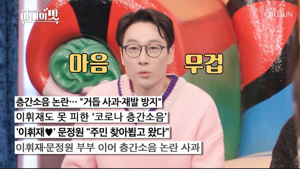 이휘재는 19일 방송된 TV조선 '아내의 맛'에서 "너무 부주의했고 실수한 게 많았다"며 "(이웃에게) 잘 사과드리고 항상 연락하기로 하면서 잘 마무리됐다"고 말했습니다.