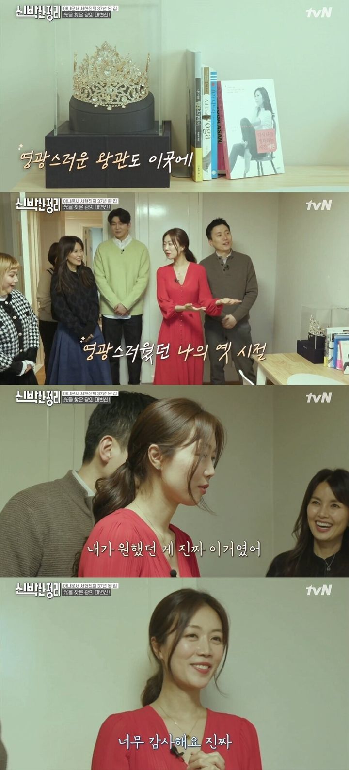 서현진은 대부분의 물건을 비워냈지만, 미스코리아 띠와 왕관 등은 몇 가지를 남기기로 했는데요, "나중에 아들에게 멋진 엄마였다는 것을 보여주고 싶다"고 한 서현진은 "출산과 육아로 인한 공백 동안 자존감이 많이 떨어졌다. 저는 좋은 엄마로 살고 싶지만 일도 놓고 싶지 않다. 지금은 주부 말고 그냥 나로 돌아갈 여유가 없는 것 같다"며 자기만의 공간을 갖고 싶다는 바람을 드러냈습니다.