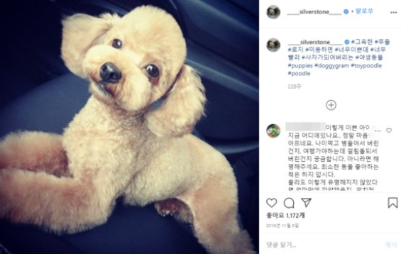 네티즌들은 "지금 10살이 됐을 이 푸들은 어디 갔나" "이렇게 예쁜 푸들은 왜 지금은 같이 안 사나. 해명해 달라"는 댓글을 달았습니다. 박은석의 소속사는 "내용을 확인해본 결과 전혀 그런 사실이 없다. 현재도 지인이 잘 키우고 있다"라고 전했습니다.
