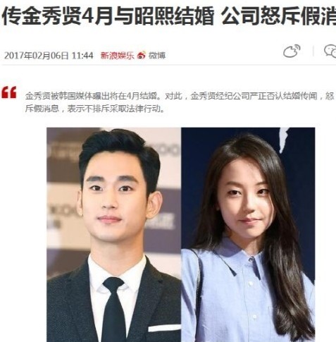 이후 2017년에는 중국 최대 포털사이트 시나닷컴에서는 김수현이 4월 말 원더걸스 출신의 배우 안소희와 결혼식을 올린다고 보도하기도 했습니다.
