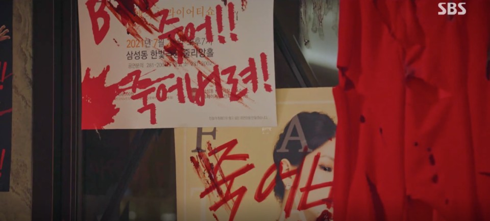 천서진에게 협박 테러를 하던 사람은 양미옥 집사(김로사)였는데요, 주단태를 광적으로 사랑하고 있었던 것. 이에 양집사는 집에서 쫓겨나게 됩니다. 이후 주단태는 천서진에세 프로포즈를 하는데요, 이 때 형사들이 나타나 주단태를 심수련(이지아) 살인사건 용의자로 체포했습니다. 제보자는 최초 목격자인 양미옥이었는데요, 양미옥은 유서에 주단태가 심수련을 죽인 진범이라고 쓴 뒤 음독자살을 합니다.