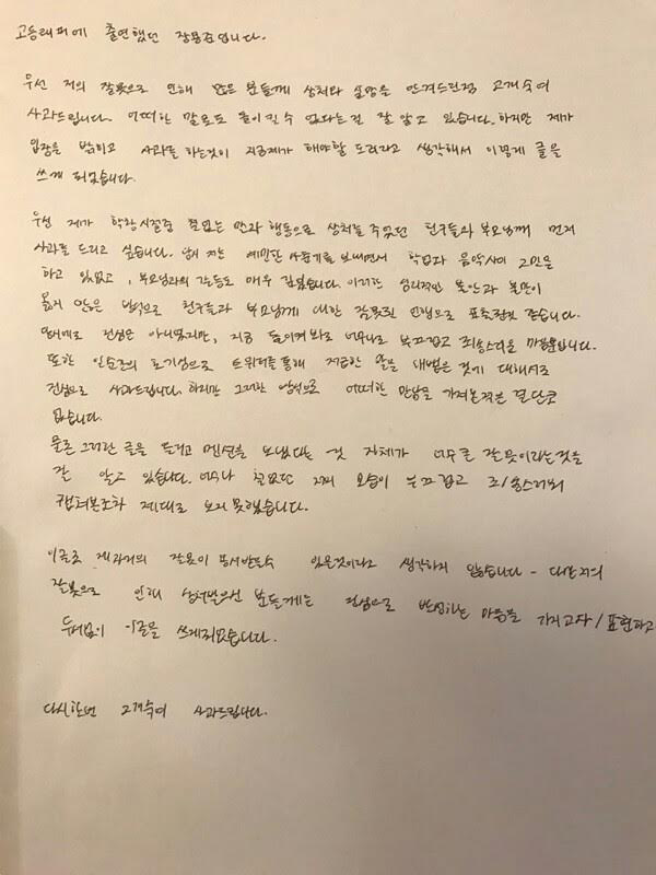장용준(노엘)은 소속사 공식 인스타그램을 통해 사과문을 전달했고, 해당 사건 이후에 자숙기간을 갖고 향후 모든 활동을 중단한다고 밝혔습니다.