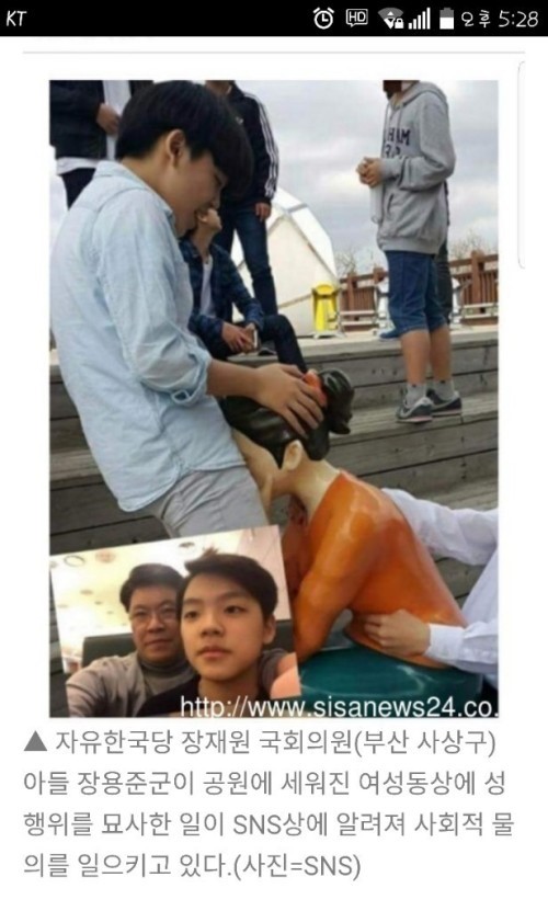 공원에 세워진 여성 조각상에 유사 성행위를 연상케 하는 장면을 연출하고 낄낄 웃는 행동을 해 구설수에 올랐으며, 미성년자 신분으로 담배를 피우거나 술을 마시는 사진들이 발견되어 논란을 일으켰습니다.