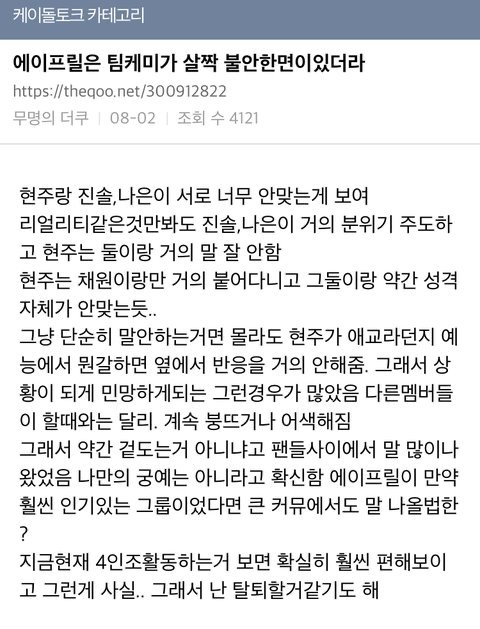 <에이프릴 이현주 친구 네이트판 원본글>